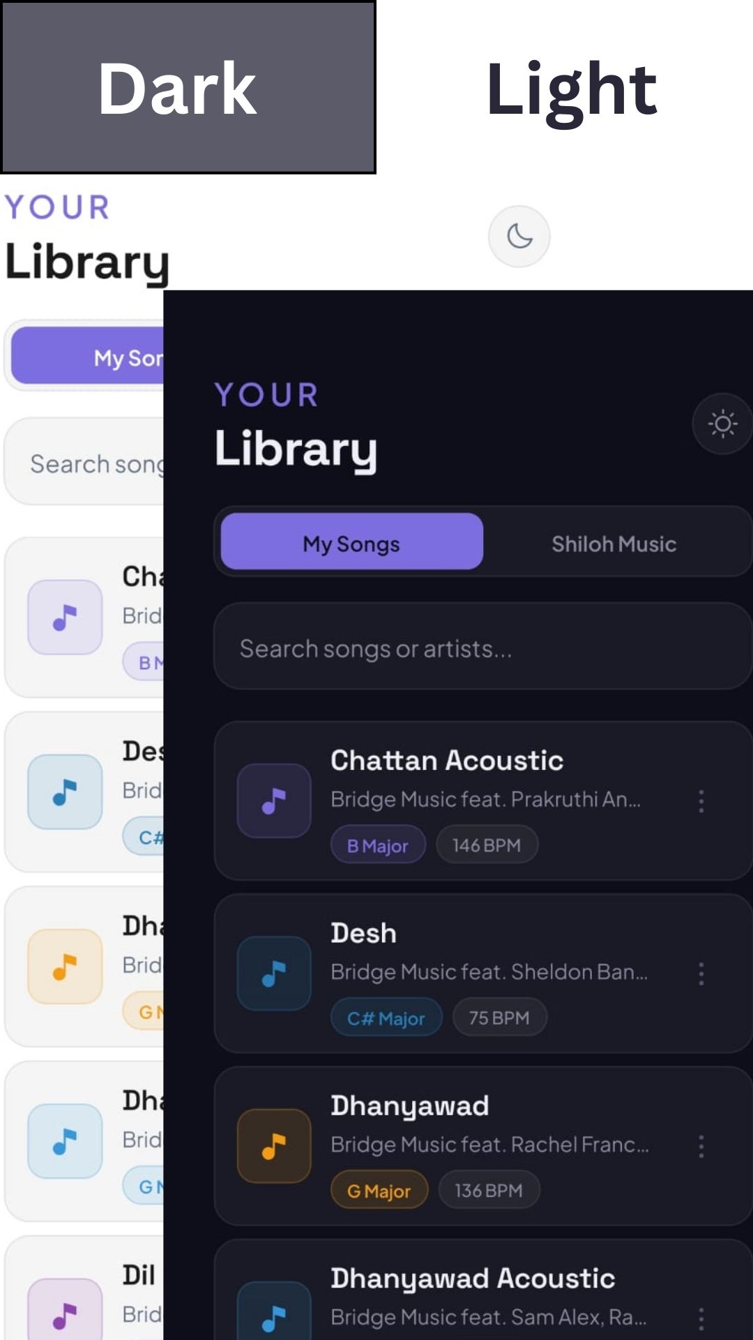 Instantly transpose any song across all 12 keys mid-performance. No more scribbled notes on paper.